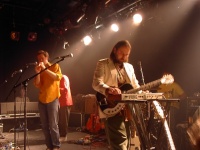 Entamant leur set dans leur formation de base, à savoir le trio, Apostle Of Hustle surfe d'entrée sur la vague post-rock grâce à une longue intro sonique et intrumentale qui capte d'emblée l'audience déjà présente en masse. La filiation étant désormais bien marquée, le vaisseau Apostle Of Hustle va dès lors cotoyer les rivages des musiques du monde. Mêlant les rythmiques des continents du sud au canevas rock plus classique, Whiteman et Julian Browne (basse, guitare et claviers) proposent une musique faite d'intelligence et d'ouverture. L'entame de chaque nouveau titre est une invitation à deux voire trois membres du Broken Social Scene à venir compléter le trio de départ. Dorénavant agrémentée de cuivres et de percussions, la musique de Apostle Of Hustle prend des couleurs et réjouit sous ses airs de fanfare de plage cubaine en plein trip rock 'n roll. Le concert dérive vers un joyeux bastringue musical et scénique, le tout Broken Social Scene s'éclatant à frayer avec les compositions de Apostle Of Hustle. Un concert intelligent, épatant et délirant sur sa fin.