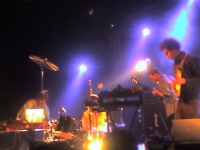 C'est un pur bonheur que de voir et entendre Ian Williams (est-ce nécessaire de le présenter ?) déverser son formidable flot d'électricité campé derrière son clavier, tandis que John Stanier (est-ce nécessaire de le présenter ? bis) assure la section rythmique comme un beau diable bien en valeur au centre de la scène, il ne lui faudra pas que quelques minutes pour être recouvert de sueur tant il se montre magistral à la batterie (réduite au minimum syndical avec sa cymbale culminant bien au-dessus de lui), assurant parfaitement ses contre-temps et tant son jeu est métronomique au possible.