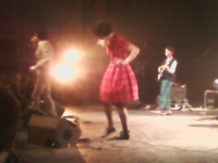 Ian, longiligne dans son costume cintré, Katie affolante dans sa robe rouge à jupon, ses mi-bas et souliers vernis, profite de l'espace qui leur est donné pour faire le spectacle, enchaîner les titres des trois albums, donnant dans l'éructation bien connue des amateurs de Make-Up, enchaînant les coups de pied ciseau en se calant le micro dans la poche, tandis que Katie sautille, murmure, explose,roucoule, ils se tapent dans les mains à chaque occasion tant la coolitude de ce couple se ressent. Et se partage. Impossible de rester assis devant un tel déploiement, ça s'agglutine dans la courte fosse crée entre la première rangée de fauteuil et la scène. Les morceaux se suivent, créant à chaque fois l'attente tant les albums du groupe sont gorgés de titres imparables. Pas de rappel, un petit bonus n'aurait pas été de trop, mais ce fut tellement bon, tellement dans l'oubli de soi pour n'être que dans le moment qu'un faux rappel prémédité aurait sans doute quelque peu gâché. heureux, souriants, on quitte la salle pour fouler le trottoir quelques minutes, le temps d'un clope, d'un verre, et l'antre nous rappelle, pour le dernier concert de la soirée, celui d'un fameux blondinet californien, mais c'est une autre histoire...