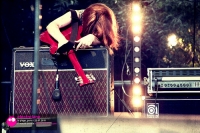 La feuille de match affichée près du bar indique "Electrelane : 20h30 - 22h" un vrai concert, pas un set de festival d'une cinquantaine de minute! Le temps de prendre un verre à la simili-paillotte, et je me dirige vers la scène, apercevant Verity & Mia caler leurs instruments.