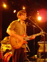 Et rien de mieux pour commencer sur les chapeaux de roue que "Velvet Cell" bien électrique et très rythmée, sur laquelle le mot ?killer' nous jaillit au visage sur les couplets. Le ton est donné et il semble que Gravenhurst va ce soir interpréter du bon rock comme ils l'ont entrepris sur quelques titres de Fires In Distant Buildings et qu'ils ne s'attarderont pas sur le folk du premier opus. En effet, dès le deuxième titre, on a affaire à du post rock serti de quelques harmoniques, avant que les guitares se mettent à hurler sur un nouveau titre incisif. Deux morceaux parachutés avec réussite qui figureront sur le prochain album The Western Land. Moi qui ne connais que leur facette calme, je suis surpris mais d'une manière forte agréable à la vue de la réussite et la présence sonore de ces chansons. La voix de Nick quant à elle est toujours aussi sublime que le ton monte ou pas. Son timbre fluet est juste quoi qu'il arrive et émerveille l'audience. Le groupe profite également de l'occasion pour interpréter leur dernier single (ce qui fait très commercial au passage) "Trust". Morceau sans intérêt majeur qui rappelle ni plus ni moins Nada Surf de maintenant. La mélodie est facile, trop lente et loin d'être imparable. Heureusement, ils se rattraperont avec l'excellent "Songs From Under The Arches" épique aux dix minutes de passages alternant entre férocité et léthargie pendant laquelle le bassiste rentrera dans de grands spasmes, et "Black Holes In The Sand", titre également revisité avec puissance, où le batteur finira lui aussi par éclater en se déchaînant sur ses cymbales.