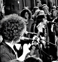 La soirée commencée, mes déambulations allers et retours entre les scènes situées dans la ville icaunaise prennent fin dans la dernière heure. L'attente est fixée dans un point précis de la Grande Rue où s'est amassée une foule serrée prenant les trois quarts en largeur de l'axe piéton. L'ambiance est déjà bien chauffée avec un esprit bon enfant ou collégien par d'autres groupes qui ont précédé au même endroit pour une réunion de potes façon famille sonique et rock'n'roll ! Tous les groupes présents qui ont joué sur le lieu se connaissent bien entre eux et j'ai pu remarquer que le chanteur guitariste et l'ancien batteur de Johnny Mafia font partie d'autres formations.