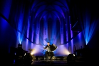 King Creosote : Pour enlever ce mauvais goût sur la langue qui ne nous quitte plus depuis notre départ précipité de chez le vegan en smoking, direction la Janskerk pour expier nos péchés auditifs. King Creosote nous y accueille et leur performance sera comme un baume sur notre confiance meurtrie. Mené par l'écossais ultraprolifique Kenny Anderson, gringalet immédiatement sympathique, le groupe délivre une folk simple, nostalgique, romantique, sobrement arrangée au sein de laquelle le doux accent chantant de Kenny lui d'une lumière douce. Mais plus que la musique elle-même, tout de même loin d'être inoubliable, c'est le personnage de sieur Creosote qui marquera, tant il est aussi adorable que Bischoff est détestable. Animé par une fouce autodérision, il profite de chaque interlude pour y aller de son anecdote. À retenir principalement : son oubli des accords d'un morceau (alors que, soyons honnêtes, c'est toujours les mêmes) qu'il transformera habilement en un one-man show hilarant ; on retiendra aussi ce morceau ("Betelgeuse"), où conscient de son public assez ignorant de sa discographie, il nous demanda de prétendre qu'il est une star se préparant à jouer son tube planétaire, la Janskerk s'étant transformé en stade l'espace d'une fausse standing ovation jouissive. King Creosote n'était pas le plus brillant des artistes du festival, j'étais sans doute un des rares à connaître un tant soit peu ses chansons, mais je suis prêt à parié qu'il a remporté l'adhésion d'une bonne partie de son public rien qu'avec son charme.