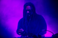 Le reste de la soirée nous aura vu revenir au papillonnage, entre les Amazones d'Afrique et leur sorte de dub disco mandingue, et les déferlantes soniques stériles de Ben Frost, qui s'est amusé à ramener une gigantesque feuille d'aluminium dressée derrière lui qui se cambre au rythme des assauts bruitistes du producteur à grosse barbe... La révélation de la fin de soirée viendra surtout du dernier concert de Hieroglyphic Being, DJ acid-techno qui, s'il ne marchait pas au LSD ce soir nous aura néanmoins rudement fait tripper dans ses volutes cosmiques aux beats furieux et chaloupés, des kilogrammes de sueur furent versés, les corps convulsèrent, il ne me reste que des flashs verts/violets et des courbatures. J'aurai pris un des plus gros pieds du festival, même si ça aura clairement entamé mes forces pour un retour à plus de 3h du mat à pédales.