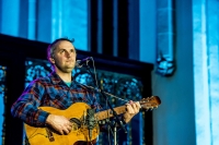 Mais je ne peux pas finir de rendre compte de ce vendredi sans accorder une place toute particulière au passage de Mount Eerie sur scène. Que voilà un concert que j'appréhendais d'une part, et autour duquel des mesures préventives étaient mises en place d'autre part. Parmi celles-ci, en dehors du "attention ce sera tristoune ramenez vos propres kleenex", toute une organisation était mise en place, à base de : réservation préalable obligatoire, obligation de se présenter au moins 10mn avant le début du show, fermeture à l'heure pile et impossible de rentrer/sortir de l'église avant la fin (ouais en plus c'était dans une église). Excessif ? Peut-être, mais transformer ce passage de Phil Elvrum en une bulle anti-festivalière, empêcher les allers-retours incessants aura permis de préserver l'intime d'un concert à coeur ouvert. Pour resituer rapidement le contexte à ceux qui ne l'auraient pas ; Phil a perdu sa femme en 2016 quelques mois après la naissance de sa fille et a composé un album retraçant son parcours, le vide de la perte, etc, de façon brute et nue. Je craignais un concert impudique de facto, gênant à regarder, qui me mettrait dans une position inconfortable de voyeur. Mais dès que Phil apparait, seul, son étui ouvert par terre, sa guitare en main, le visage fermé et qu'il se met à entonner ses vignettes désolées de sa voix sombre et contenue, en déroulant ses arpèges économes... mes craintes s'envolent et je fonds comme un sucre sous une pluie ardente. Phil jouera le début, puis la fin de son album (zappant le coeur), le regard fuyant, un thank you mécanique et gêné entre chaque morceau. Pas un bruit dans l'assistance en dehors des applaudissements. Une fois "Crow" achevé (dernier morceau de l'album), je réalise que ça ne fait même pas une demi-heure que je suis assis sur le sol froid de l'église. Et puis quoi ? Phil se rapproche du micro et annonce "I'm gonna play some new songs now". À partir de ce moment l'atmosphère change du tout au tout. Phil semble se décoincer progressivement, comme s'il laissait derrière lui les affres nécessaires de A Crow Looked at Me pour se lancer dans une nouvelle vie, avec des compositions qui respirent davantage, avec un jeu de guitare plus enlevé, plus riche, des paroles qui gardent un flot soutenu (à la Mark Kozelek 2.0) mais qui cessent de n'exprimer qu'un désespoir confus et commencent à prendre du recul, à renouer avec son histoire, et surtout à blaguer (une track parlait d'une tournée avec des dates communes entre Phil et Skrillex, la salle était hilare). On en recausera quand l'album de 2018 sortira (il a été annoncé à l'heure où j'écris ces lignes, et j'ai eu la chance d'en voir les deux tiers sur cette scène).
