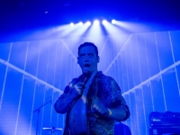 Dommage de faire jouer The Soft Moon dans le forum, un espace plus confiné comme la T400 sied plus à cette musique claustrophobe. Mais qu'à cela ne tienne, ils attaquent dur avec "Deeper", leur son industriel résonne dans tout ce hall, les percussions se mélant aux riffs de basses pour le meilleur effet, bien lourd. Luis ne trimballe plus son gros tonneau metallique qu'il faisait presque rouler sur le devant de la scène il y a quelques années, il a opté pour une petite poubelle metallique en guise percussion. Vu la frénésie avec laquelle il tabasse cette petite chose, j'imagine un stock coincé dans le camion entre deux racks de pédales. Un set rugueux, intense, même si c'est les mêmes titres à peu près d'un concert à l'autre, c'est pourtant tout le temps différent.