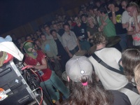 Déflagration sonore et déluge de décibels à l'AB Club rempli jusqu'à la gueule pour vivre une expérience sonore des plus impressionnantes: Lightning Bolt. Ce terrible duo ricain, composé du bassiste Brian Gibson et du batteur Brian Chippendale, recadre les canons du punk et du rock actuels. Sauvage, dérangeant et jouissif. La scène de l'AB a été démontée pour la circonstance. Que cela se sache, Lightning Bolt joue au plus près du public, donc dans le public! Acculés contre son mur d'enceintes et cerclés par la foule, les deux Brian martèlent leurs instruments pour nous cracher à la face un noise rock brutal des plus explosifs impossible à appréhender autrement qu'en live. Leur perfomance est proche d'un Confusion Is Sex des Sonic Youth (qu'ils comptent parmi leurs fans) vs Ruins. L'extraverti Chippendale couvert d'un horrible masque vert lézard assure à lui seul le show invectivant un public hyper réactif et transi. Constructions et déconstructions de murs sonores à grands coups de rythmiques telluriques pour un concert coup de poing.