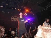 Mark Lanegan, quant à lui, a chanté à merveille encore une fois. Sa voix grave résonne encore sur les murs d'Oberkampf et on se demande encore si ce type a déjà chanté une fausse note dans sa vie. La chanteuse qui l'accompagne (Shelley Brown, on a enfin été présentés) apporte une touche de fraîcheur au milieu de tant de sueur, sur "No Easy Action", sa voix s'envolait alors que nous, nous étions mis à bas par la puissance de cette chanson terrifiante. De bout en bout, nous avons été malmenés par des guitares assassines et par les compositions sublimes et tragiques de Lanegan. Bubblegum est un disque énorme mais il fait peur, sur scène les chansons de ce disque sont encore plus flippantes et encore plus belles. "Little Willie John" a été encore une fois un des grands moments de la soirée, "Sideways In Reverse" et "Driving Death Valley" ont été le théâtre de pogos dantesques et "When Your Number Isn't Up" en ouverture du rappel fut d'une beauté magnifique et d'une tristesse étouffante... on en redemande. Difficile également de ne pas exploser pendant "Skeletal History" qui reste un des meilleurs morceaux de Mark, surtout sur scène. Le rythme venu tout droit de l'enfer emporte tout sur son passage, et là encore, nous avons eu droit à un pogo du feu de dieu et à des slams que nous n'avions plus vu depuis longtemps. Dans la salle nous n'avons vu que des sourires et des visages émerveillés, nous n'étions donc pas seul !!! Combien, parmi tous ceux qui étaient là ont pu résister à la beauté de "One Hundred Days", "Creeping Coastline Of Light" ou encore "I'll Take Care Of You" ??? Non y a rien à faire, ce concert a été époustouflant du début à la fin. Les musiciens nous l'ont dit, ce concert fut leur meilleur sans l'ombre d'un doute. Ils ont été bluffés par ce public en transe et totalement dévoués à leur musique. Il n'y a eu aucun temps mort des deux côtés de la scène et c'est quand même un vrai bonheur d'assister à ça.