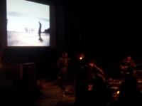Ne supportant plus le contact de l'osier, le concert se fera debout, une bien meilleure visibilité du groupe -celui ci étant assis au même niveau que le public, la visibilité ne dépasse pas les premiers rangs. Ce qui n'est pas plus dérangeant que ça, Oiseaux Tempête jouant sur la diffusion d'images de Stéphane C. Le post rock du groupe alterne les phases contemplatives avec d'autres plus agressives, frôlant même le prog d'un Pink floyd par moment, la froideur kraut d'un Beak> à d'autres. Gareth Davis, prodige de la clarinette, vient inssufler un peu de free dans ce mélange audacieux, alliant parfois deux mélodies en une, à la manière (toutes proportions gardées) d'un Colin Stetson. L'écran définitivement trop petit ne permet pas vraiment d'apprécier comme il se doit l'immersion dans les vidéos.