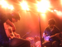 Lorsque le noir se fit et que les musiciens se firent attendre, c'était une centaine de c?urs qui battaient à l'unisson. Dave Pajo, Brian McMahon et Ethan Bucker ont beau être des gars comme nous, les voir d'aussi prés filait presque les chocottes. Et lorsque tous les musiciens s'alignèrent, raides comme des piquets, quasiment endormis et défoncés jusqu'aux yeux, pour interpréter un "For Dinner..." lancinant et angoissant, un silence religieux se fit dans la salle.