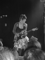 Si The Dø sait se renouveler sur chacun de ses titres studio il en est de même pour leurs interprétations scéniques vis-à-vis des titres originaux. Ils ne mettront pas beaucoup de temps pour convaincre tout le monde avec une entrée en puissance sur "In My Box" ultra rallongé très noisy qui incite d'ailleurs le batteur accompagnant le duo à attaquer d'emblée un bon solo. Dan Levy aux allures de Johnny Depp il est vrai avec ses grosses lunettes noires tortille du cul et dévoile clairement ses intentions de tout donner. Ca démarre fort et le public est un peu pris de court face à cette énergie à revendre qu'il ne peut pas s'offrir encore statique depuis le passage de Perio. Commence alors un show remarquable de part ses nuances et ses excès. Vêtue d'une jupe dorée Olivia Merilahti est excentrique dans ses gestes mais plaque ses accords avec soin et justesse. Elle chante de façon irréprochable avec sa voix singulière et surtout sans altérer ses airs coquets par des intonations surjouées. Cette nuance justement, la plus habile, rehausse des titres comme "At Last" ou "On My Shoulders" trop entendus et qui avaient besoin d'un petit coup de jeune même si très récents. Le déroulement du concert est alors tout sauf prévisible et ce n'est que mieux. Je pense en particulier à Dan complètement allumé et doué avec ses arrangements à la flûte (durant une intro excellemment longue sur "Playground Hustle"), à la basse bien qu'il y ait collé quelques repères au scotch derrière le manche ("Aha" très groove) ou aux claviers qu'il assénera de coups de fesses avant de nous quitter. L'atmosphère est électrique, fluide et cela durera plus d'une heure. L'occasion pour le groupe de nous présenter un inédit intitulé "How Could I ?" des plus épurés rompant les ponts avec leur coté The Cardigans.
