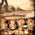 Sur la (très belle) pochette, on peut voir des chatons déguster un repas dans une ambiance très 19eme.