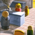 Une cuisine aux couleurs ternes, monotones. Un carrelage pâle et quelques meubles bleutés, dont un au milieu de la pièce, sur lequel un grille-pain s'apprête à brûler. Autour de cette table viennent se rassembler les membres d'une famille aux visages souriants, de teint orangé. Ils sont dénués de bras et disposent comme seules jambes de sortes de socles plats. Ces êtres étranges, qui peuvent rappeler les Playmobil de nos enfances, semblent figés et immobiles dans un moment du quotidien qu'ils ont sans doute vécu des centaines de fois...